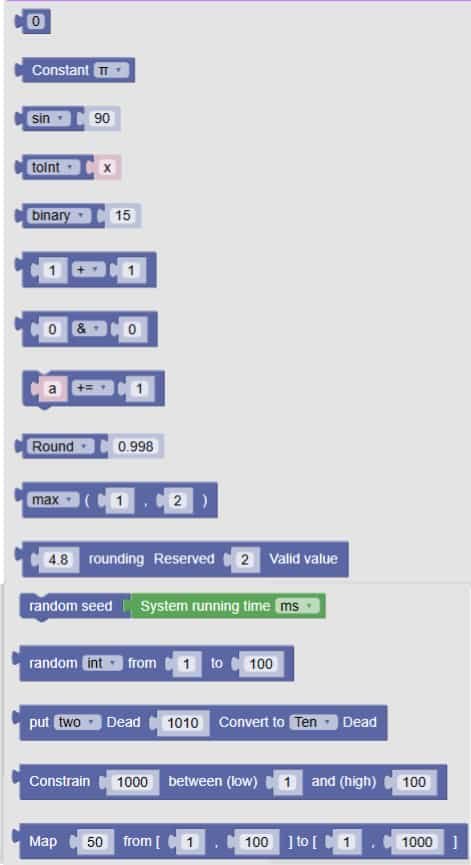 | 6 | 0 ÷ 0, 0 ÷ 1, a ÷ 1 | Division blocks | +, −, ×, ÷, %, //, ** | – +: add– −: subtract– ×: multiply– ÷: divide– %: remainder– //: whole number division– **: power |