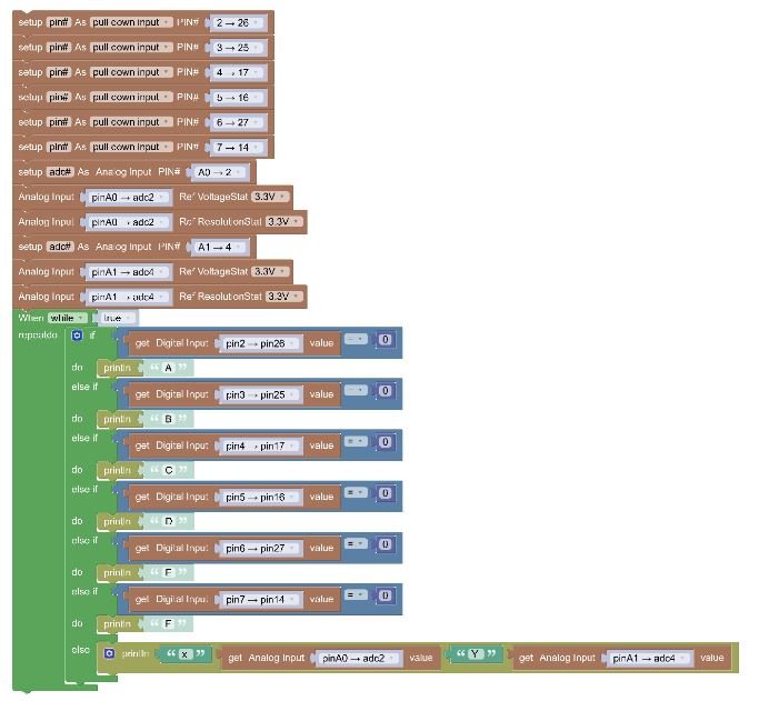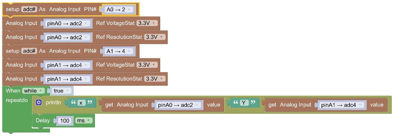 print('x ', adc2.read(), 'Y ', adc4.read())   # Show joystick position